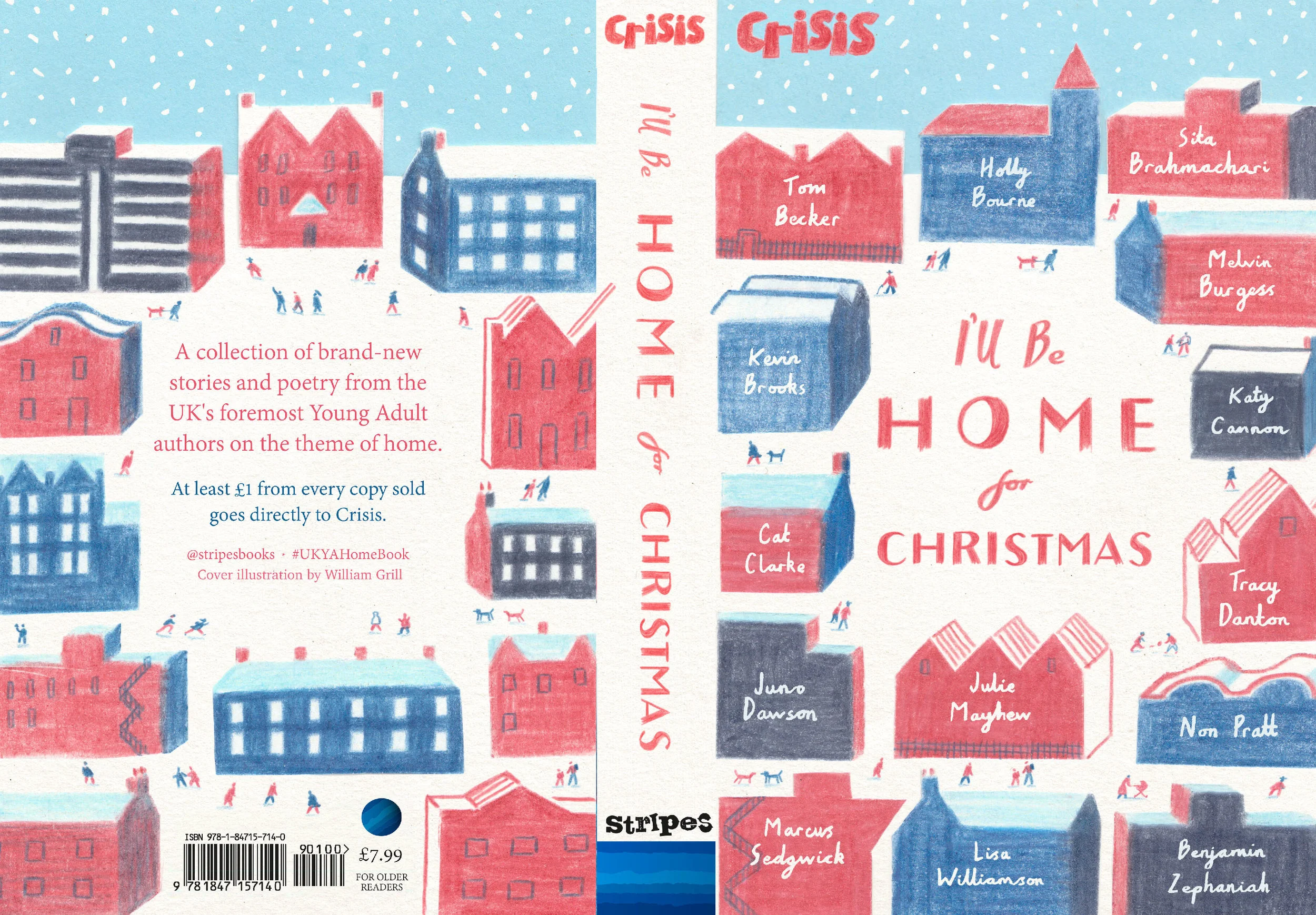 Book jacket for I’ll Be Home for Christmas, published by Stripes for homelessness charity Crisis. A collection of short stories and poems from the UK’s foremost Young Adult authors on the theme of home. Authors include: Julie Mayhew, Benjamin Zephaniah, Marcus Sedgwick and Sita Brahmachari.
